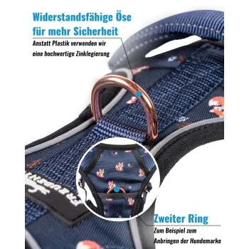 Let’s get Foxy! Das Brustgschirr für alle, die es ausgefallen mögen. Die atmungsaktive Mesh Fütterung ist kuschlig weich, saugt sich im Gegensatz zu Plüsch oder Frottee jedoch nicht mit Wasser voll. Somit ist sie für jedes Wetter bestens geeignet. Das Brustgeschirr ist mit 2 Ringen, an Rücken und Brust ausgestattet. 4 Gutre sorgen für feinste Einstellmöglichkeiten. Unsere Hundegeschirre werden 100% klimaneutral produziert. ACHTUNG: Bitte unbedingt die Größentabelle in den Bildern befolgen!