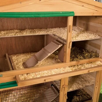 Die Stockwerke können Sie verschließen, um Tiere, etwa wegen Krankheit oder zur Reinigung des Stalls, zu trennen.