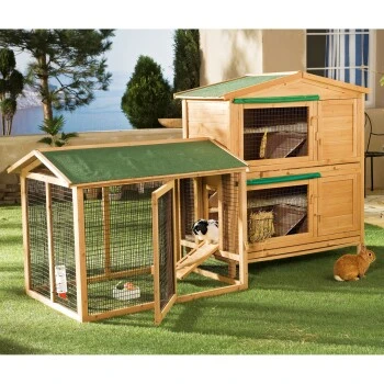 Kapazitätsauslastung für max. 2 Kaninchen. Um weitere Tiere beherbergen zu können, sollte das KERBL Freilaufgehege Appartement (siehe Produktzubehör) in Verbindung mit dem Stall zur Verfügung gestellt werden. Idealerweise sollte der Stall unter einem Vordach an der Wetter abgewandten Seite stehen.