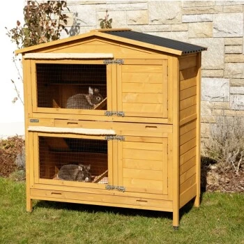 In dem Nagerstall Appartement Pro wird sich Ihr Liebling mehr als nur Wohlfühlen. Einmal eingezogen, wird er nicht mehr ausziehen wollen. Der Stall bietet genügend Platz für vergnügtes hoppeln und toben über 2 Etagen. Durch das wetterfeste Kunststoffdach, sind Ihre Lieblinge vor der Witterung zuverlässig geschützt. Die Türen können getrennt voneinander geöffnet werden und bieten erhöhte Sicherheit durch je zwei Verschlüsse pro Tür.