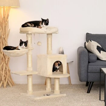 - OPTIMALE KRALLENPFLEGE MIT SISAL: Die widerstandsfähigen Sisalstämme des Kletterbaums ermöglichen die nötige Krallenpflege und sorgen dafür, dass Ihre Möbel verschont bleiben