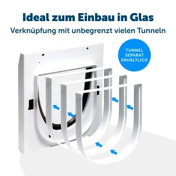 - OHNE TUNNEL: Die Katzenklappe wird ohne Tunnel geliefert. Dies gibt Ihnen die Option die Klappe in dickere/ dünnere Türen als 5 cm zu montieren. Ein 1,8 cm Tunnel ist seperat und mehrfach erhältlich